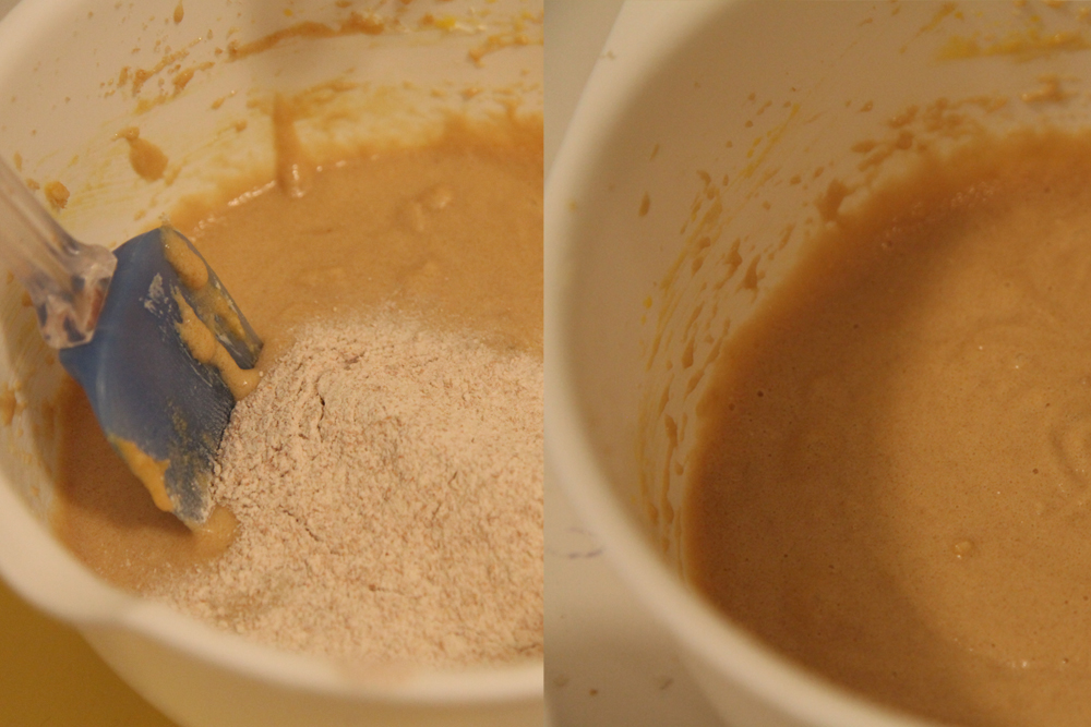- Slowly add dry ingredients to wet mixture. Ensure ingredients are well-combined then add milk and aim not to over mix.
