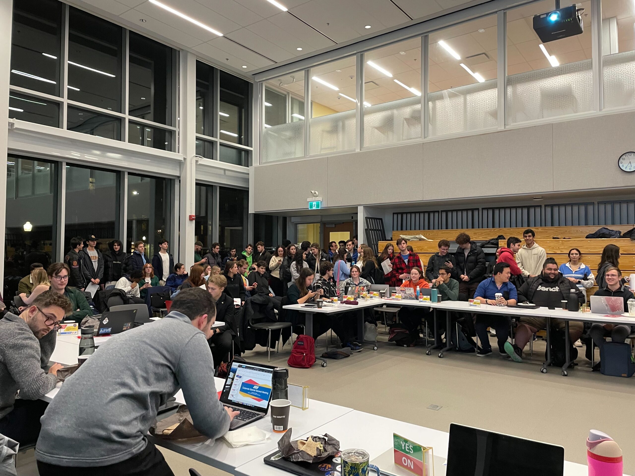 Students from Palestinian and Israeli backgrounds shared their personal stories with Assembly. The AMS announced a member from the Peer Support Centre (PSC) was on standby outside.