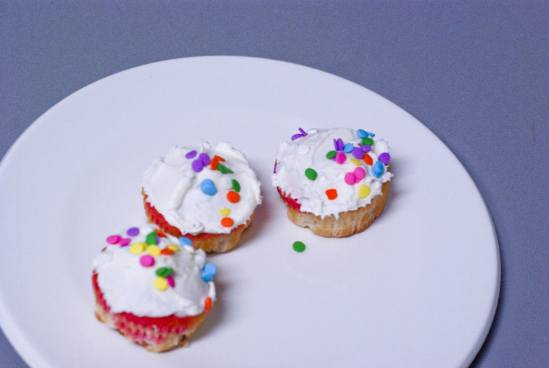 The recipe was super easy to make. Although the lighter pink shade of the batter didn’t show up well when baked, the different colours on the inside of the cupcake has a cool effect.